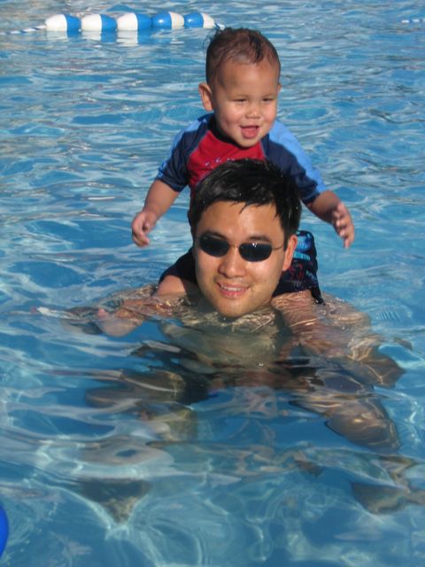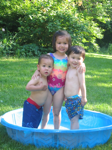 My summer continues to be busy, but it is lots of fun! Mommy's been taking me to the wading pool a lot. I get braver each time. Just yesterday (happy 18 months to me!), I layed down in the water and kicked and blew bubbles!