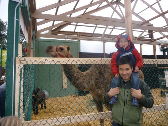 We also went to see some reindeer. Yes, some real reindeer! They were pretty cool but I really liked the camel best. His name was Curly and he had a friend named Moe (Moe was a Donkey). Curly was really nice and gave daddy a surprise lick. Then he ate some bread and marshmallows, Curly that is. Oh, and Santa was there too. I told him I wanted a Thomas train for Christmas. He said he would work something out with the elves. I hope they work fast, there's not much time.