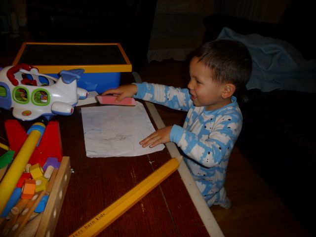 But it's not all work, I get to have fun as well. Here's me playing with a cool drawing pad Yeh Yeh and Nai Nai got me for Christmas.