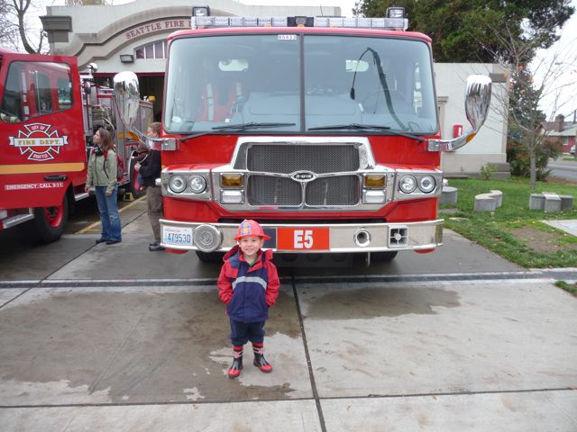 The firehouse also had an open house, I got to my new Fireman boots and my fire chief hat on and showed everyone what a good fireman I am. The fire engines were extra cool (that's my new favorite word by the way). I also sang lullabies to Rachel. That's cool dude!