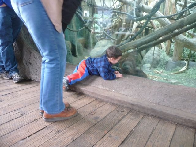 Here's me playing with the Oranguntans. Look how close I am to the glass. Last year, I wouldn't go within five feet of them.
