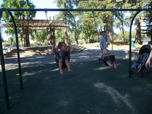 I also played with Julian. I wasn't so sure about him yet but we had a good time on the swings.