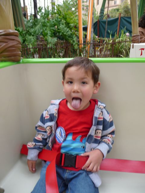 Ok, here it is at last, the Disneyland post. I couldn't wait to get started and went right away to Dumbo. I'd been talking about that one with mommy and daddy for a couple of days already.