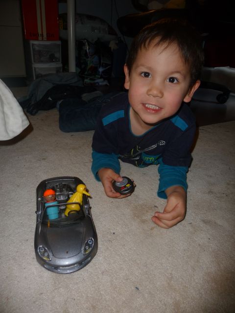 Finally, the other day I saw daddy's RC car and really wanted to play with it. It was super fun to pretend my Sesame Street people were driving.