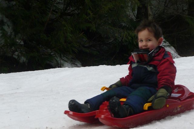 I've been working on my independence and saying no to my parents and teachers but only a little bit. Usually I listen and share with the other kids (but only if the toy isn't really cool). Mommy and daddy have instituted a sticker system for when I listen and help out around the house. If I get 10 stickers, I get to have a reward. I picked to go sledding again for one reward. We got some new sleds since the old ones were breaking. I really liked one and called it my car sled since I could steer. It was lots of fun and nobody got hurt (see video).